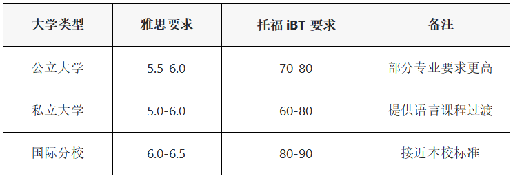 (注:部分专业(如医学、法律)对语言成绩要求更高,建议申请前查看院校官网具体标准。)