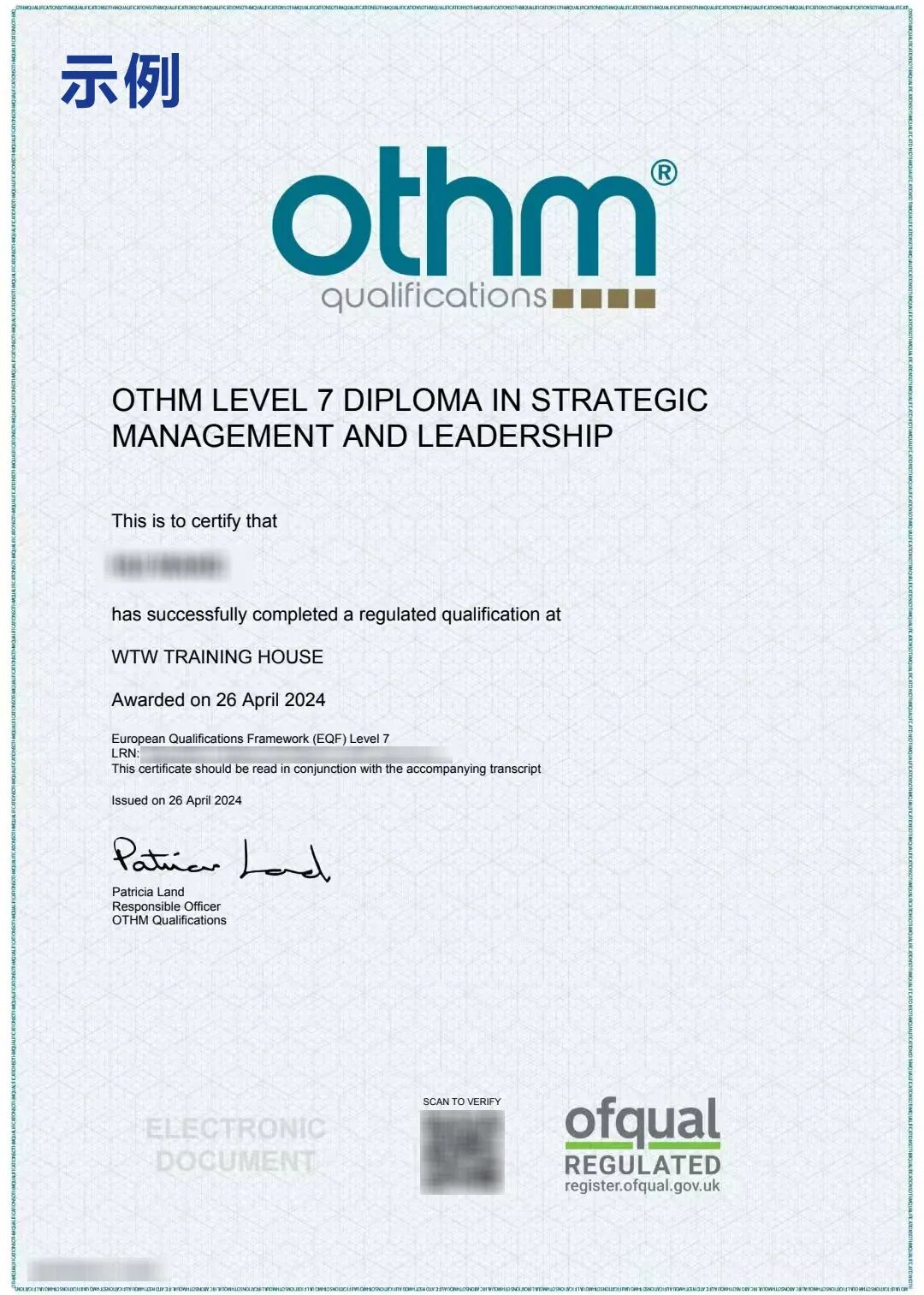 OTHM是英国非营利性学术机构,其课程由Ofqual认证的颁证机构监管,其颁发的学历文凭及职业资格证书被全球160多个国家认可。