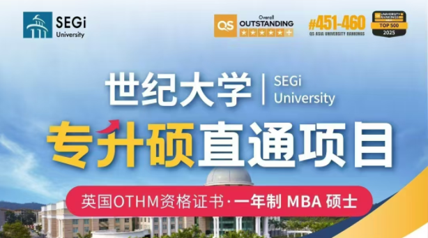 马来西亚世纪大学近日推出全新专升硕项目,主打无考试、无答辩、作业模式,通过修读英国OTHM资格证书后,可直接衔接该校一年制MBA硕士课程。这一项目是否真实可靠?如何申请?本文将为您详细解读。